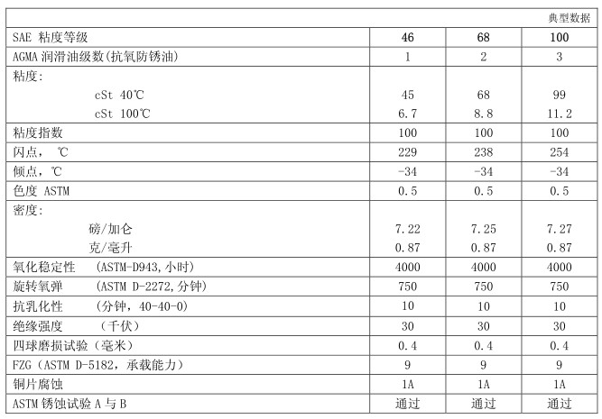 性 能: ● 独特的抗氧化性和热稳定性 ● 使用寿命长,并保持系统清洁 ● 采用无灰抗磨添加剂,不含锌 ● 优异的抗漆膜生成和抗沉积性能 ● 优良的抗泡沫性能 ● 迅速与水分离和良好的水解稳定性 ● 优异的防锈蚀和防腐蚀性能
